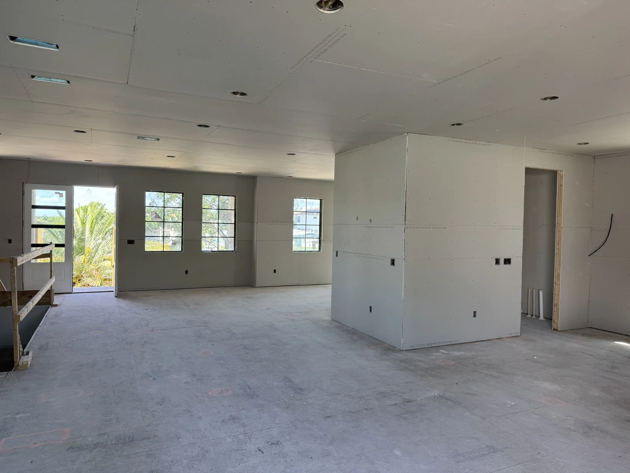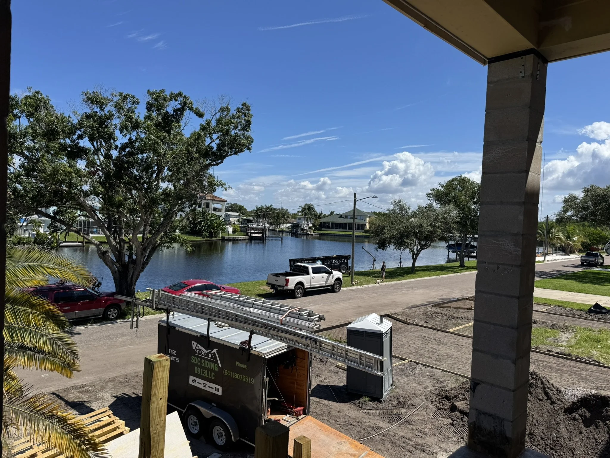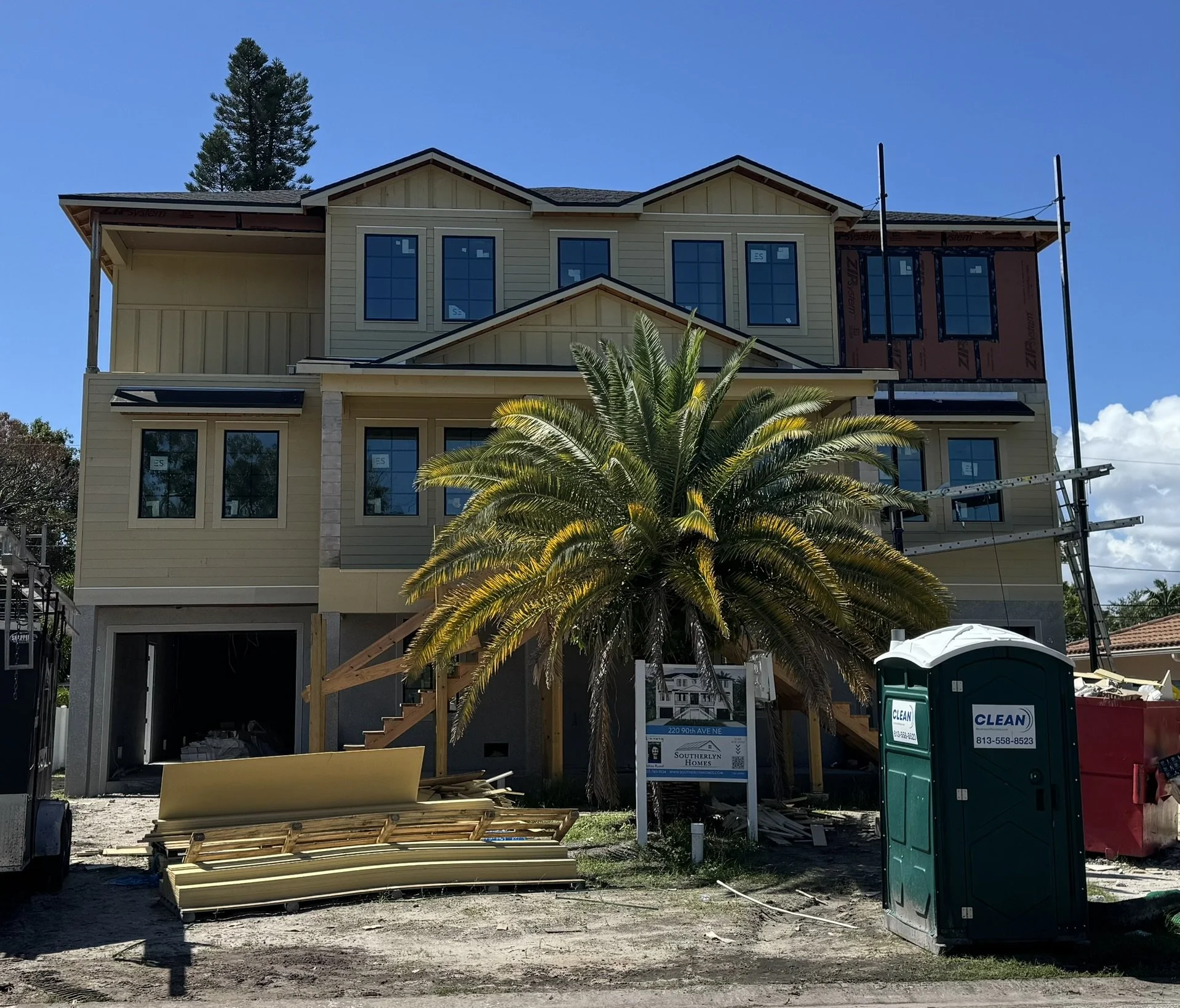 This elegant home boasts a three-story elevation, highlighted by a grand front staircase. The front porch and primary bedroom balcony offer stunning water views. Inside, the large foyer leads to both a formal living room and dining room. The layout includes a guest suite on the main level, while the primary suite is located upstairs. A pre-wired elevator shaft is included for future convenience. The pool bath provides easy access from the lanai. Additional features include a three-car garage with extra storage at grade level and 54 feet of waterfrontage, with access to Weedon Island and Tampa Bay. Construction is underway, with the opportunity for presale available.