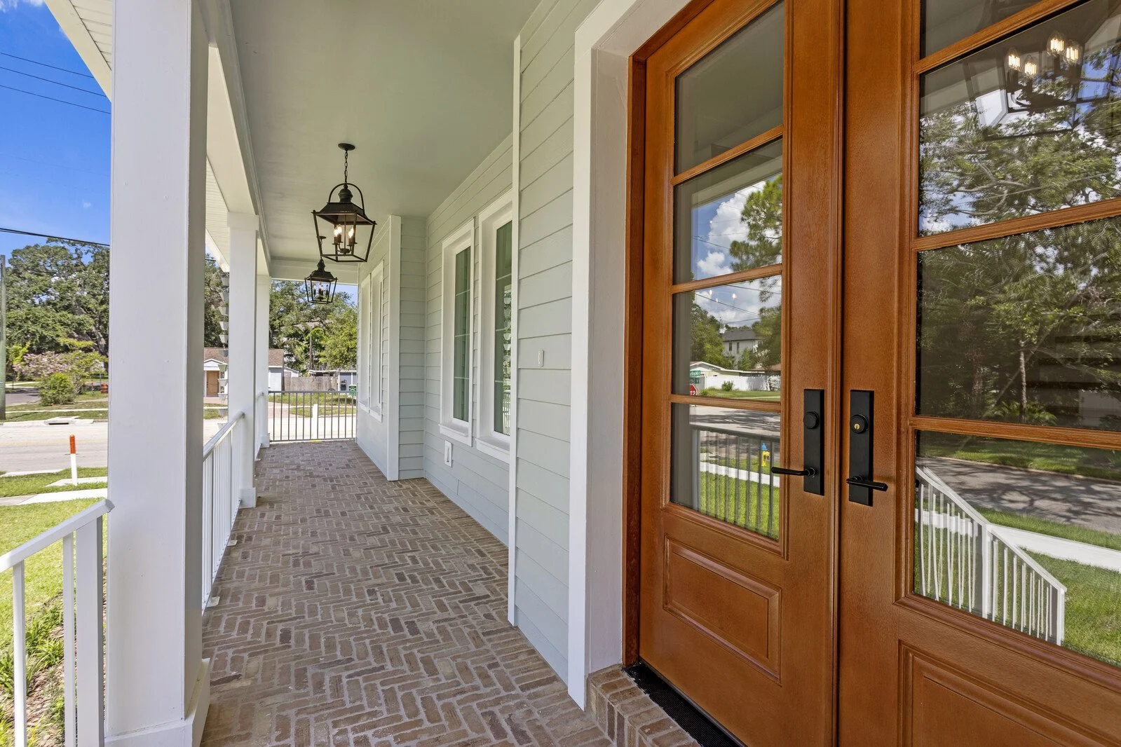 Brick-pavered front porch and shellock-pavered pool deck and back lanai